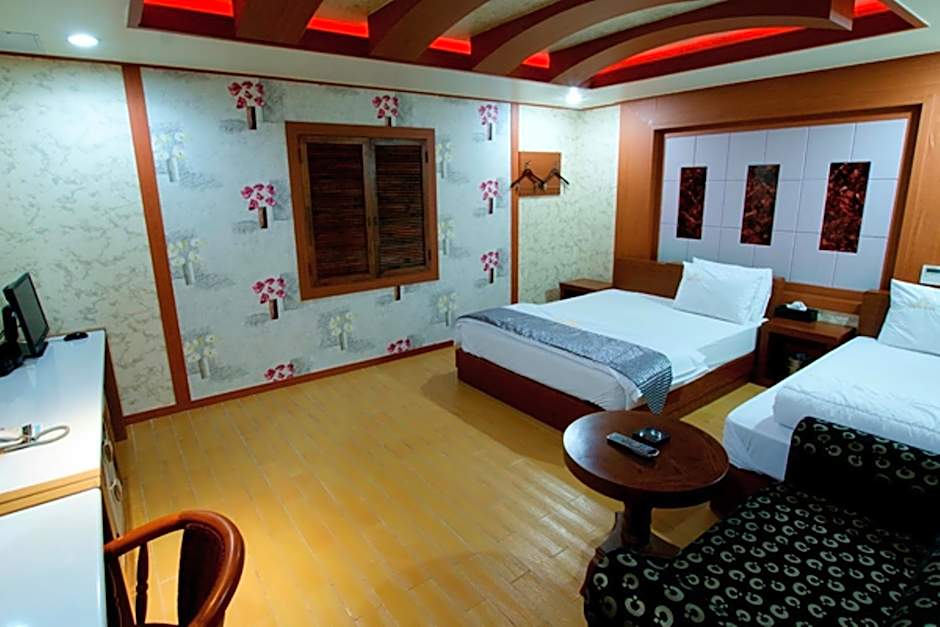 This air-conditioned suite comes with a sofa, private computer and TV. The attached bathroom features a spa bathtub.